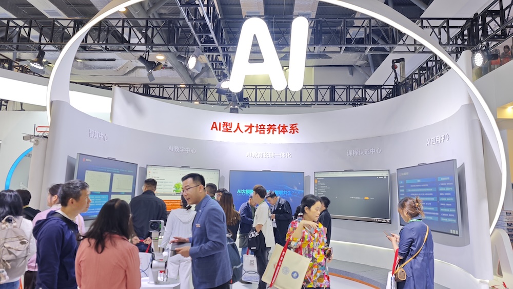 作为教育智能化领域的技术引领者,神州泰岳(股票代码:300002)控股企业——欧帝科技携多项AI教育创新成果和解决方案,全面展示其在推动教育数字化转型、构建AI教育新范式方面的卓越实力与前瞻布局。其中,高度智能化的“AI Master机器人”小欧成为展会一大亮点,吸引了众多与会者的目光。